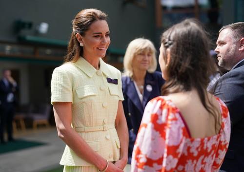 Kejt se na 13 dan Vimbldona pojavila u bledo zelenom autfitu koji je savršeno istakao njenu liniju, ali i nežan ten. Odlučila se za lepršavu midi suknju i strukirani blejzer u istoj nijansi. Ovu jednostavnu kombinaciju dodatno je začinila nakitom.