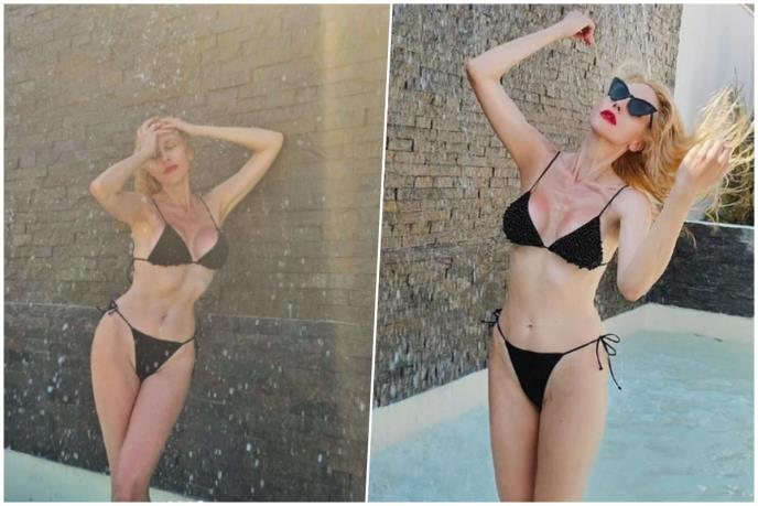 Zgodna glumica je izmenjala poze dok je pozirala u crnom bikiniju, a zbog njenog izvajanog tela i brutalnih oblina mnogima je skočio pritisak, dok su silikonske grudi bile u prvom planu.
