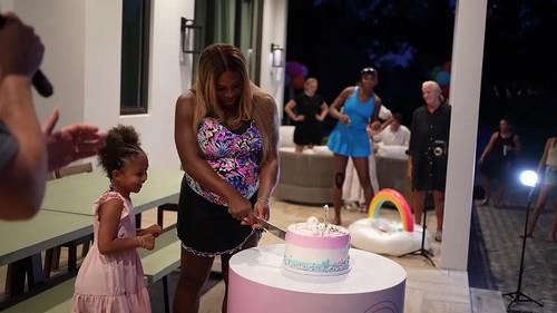 Slavlju je prisustvovala i njihova petogodišnja ćerka Olimpija Ohanijan. Serena Vilijams mislila je da će pol bebe otkriti uz pomoć torte čija unutrašnjost je trebalo da bude ili u plavoj ili u roze boji. Aleksis Ohanijan napravio je malu šalu pa je poručio tortu u žutoj boji. Slavna teniserka je bacila kolač na muža, kada je to videla, a onda je uz pomoć dronova otkriveno da par čeka ćerku.