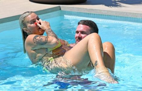 43-godišnja Keri viđena je kako se brčka u bazenu sa svojim ćerkama i dečkom, a par se toliko prepustio nežnostima. Osim što su se zabavljali skakanjem u bazen, potapanjem i drugim aktivnostima, Keri i Rajan koristili su svaku priliku za razmenu sočnih poljubaca i zagrljaja.