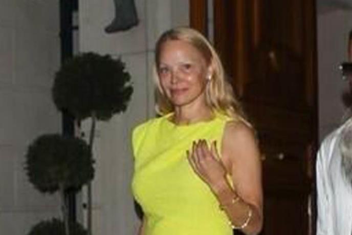 Raspuštene duge, plave kose, s velikim osmehom na licu i vrlo tankim obrvama, nekadašnja zvezda "Čuvara plaže" prošetala je u jarko žutoj midi haljini bez rukava.