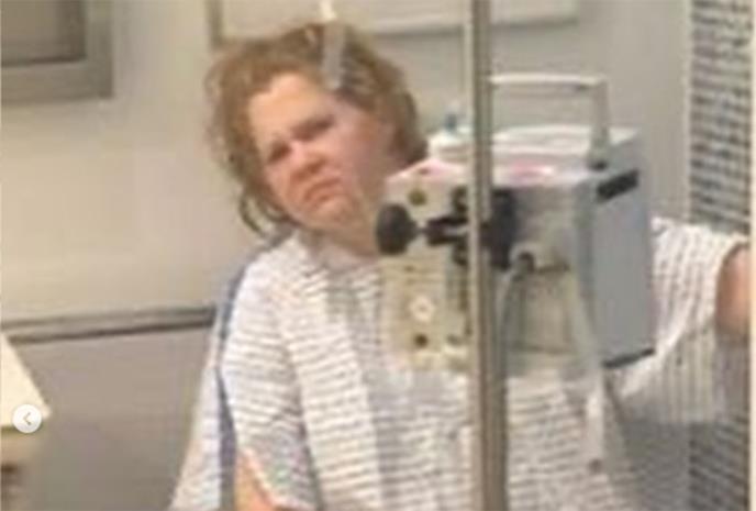Zvezda serije "I Feel Pretty" zatim je podelila šokantnu fotografiju na kojoj je priključena na infuziju i nosi bolničku odeću dok joj se kosa haotično kovrdža oko namrštenog lica.