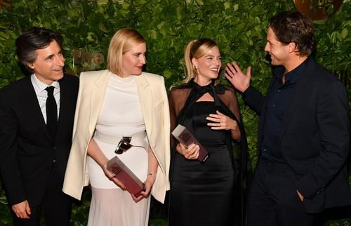 Par je pozirao pored rediteljke filmskog hita "Barbi" Grete Gervig, njenog supruga Noe Baumbaha i Lore Dern u prostoriji za novinare nakon što je Gervig osvojila nagradu Tribute.