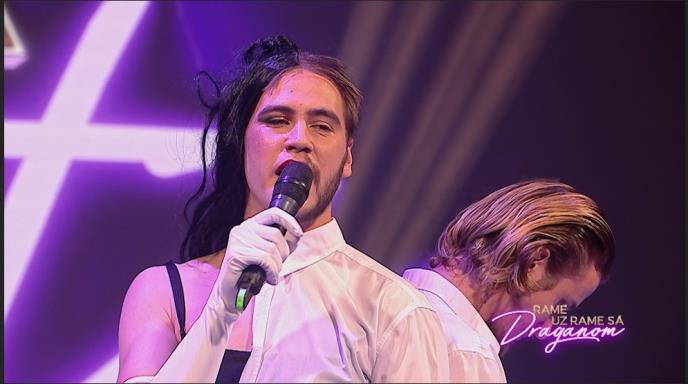 Ipak posebna atrakcija je bio Nemanja Nikolić koji se pojavio kao pola muško pola žensko, a svojom "ženskom" polovinom bio je niko drugi do Dragana Mirković.