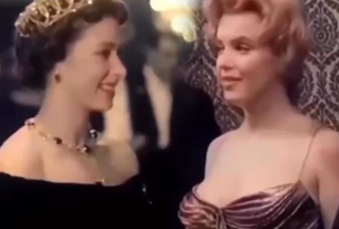 Na snimku se vidi da je kraljica "bacila oko" na dekolte Merilin Monro sa osmehom, a primetno je da kraljičinom pomoćniku bilo neprijatno u trenutku kada su se Elizbeta II i Merilin pozdravile, upravo zbog dekoltea. Bez obzira na sve razmenile su nekoliko reči uz osmeh.