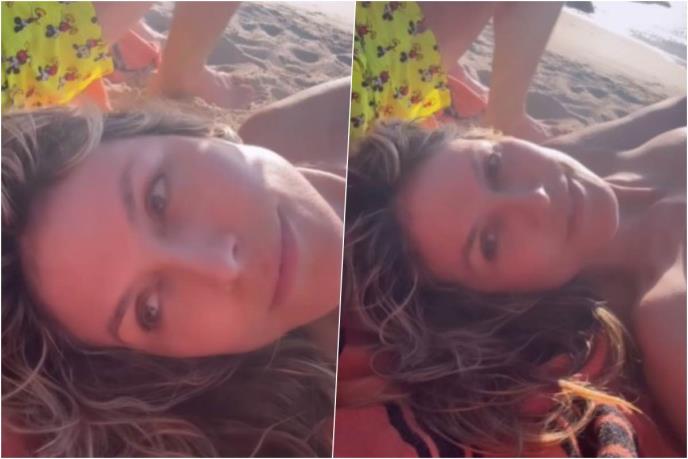 Hladnije krajeve zamenila je toplijima pa je tako odlučila i da to masimalno iskoristi. Na snimku koji je podelila vidi se kako se sunča na plaži, na sebi ima minijaturni donji deo kupaćeg kostima, dok je gole grudi prekrila samo rukom.