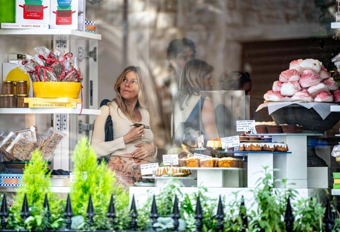 Ona već deli ćerku Marlou (10) iz prethodne veze sa glumcem Tomom Staridžom (38). Zvezda Alfieja izgledala je sa stilom na izlasku u kafić u Noting Hilu u kaki kaputu i teksas kombinezonu sa nosiljkom za bebe.