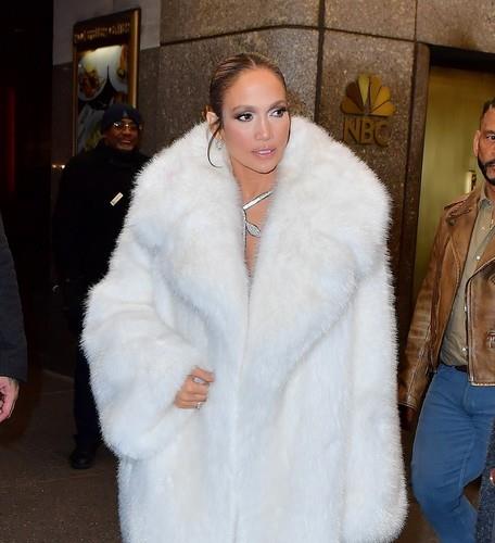Izdanje je zaokružila efektnim čizmama u disko stilu - imaju visoku potpeticu, špicasti vrh i u celini su sačinjene od svetlucavih šljokica. Dozu glamura doneo je i skupoceni, bistavi nakit, a Dženifer je ovom prilikom isprobala i gorući trend zime - reč je o takozvanoj mob wife estetetici.