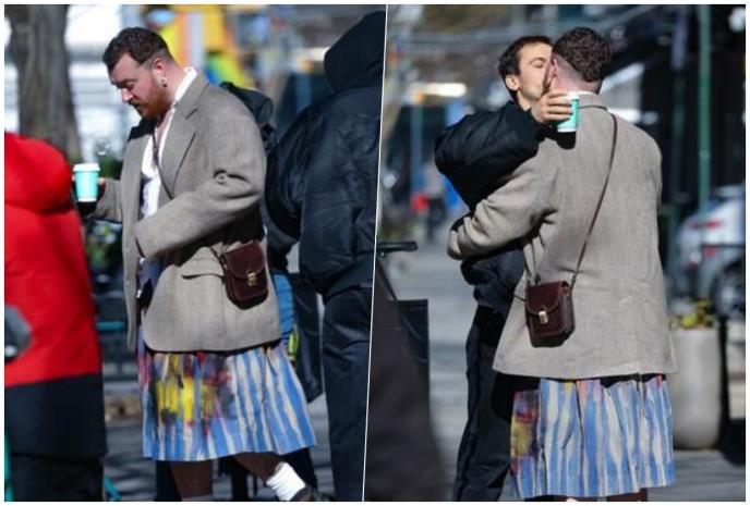 Ipak, ono što je pored stasnih zagrljaja i poljubaca privuklo pažnju bio je pevačev stajling. Naime, Smit je nosio šarenu suknju, koju je upario sa predimenzioniranim sakoom i minijaturnom torbom.