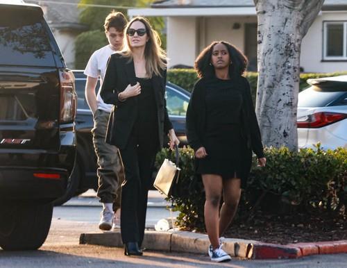 Njeno pojavljivanje dolazi nakon natpisa da njen bivši suprug Bred Pit koji odnedavno živi sa svojom devojkom, dizajnerkom nakita Ines de Ramon, vodi bitku sa ruskim tajkunom oko vinarije u Francuskoj nad kojom je ranije delila vlasnistvo sa bivšim mužem. Prodala je biznismenu iz Rusije svoj deo i nastao je zatim niz problema.