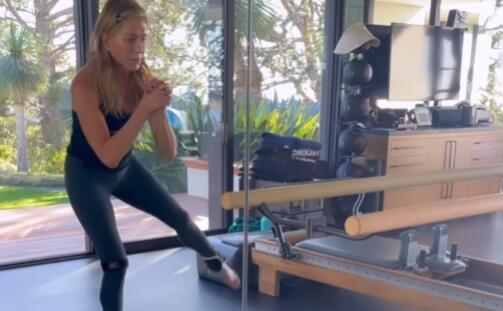 Na videu snimku koji je pre nekoliko sati podelila, Dženifer Aniston, balansira uz čučnjeve i podizanje nogu, radi podno trčanje i sklekove i to sve sa tegovima na nogama. Rigorozni trening Aniston završava na prostirci uz reči: