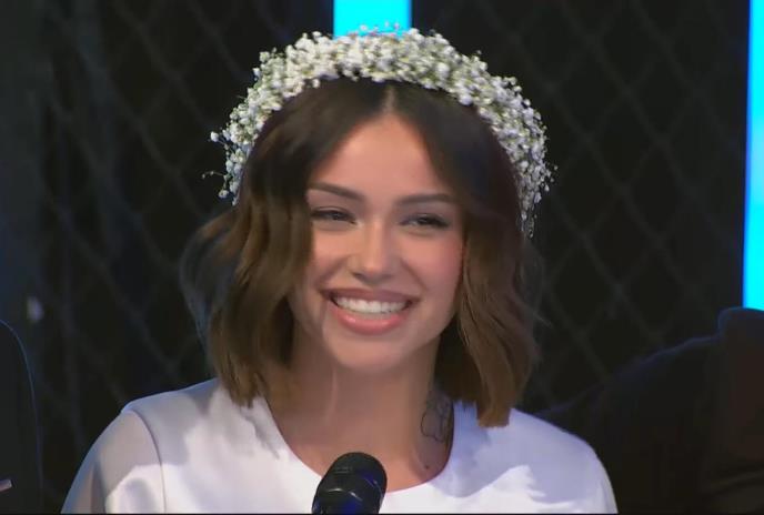 Breskvica je nastutila večeras na takmičenju "Pesma za Evroviziju", a nakon toga razgovarala je sa voditeljem u grin rumu.