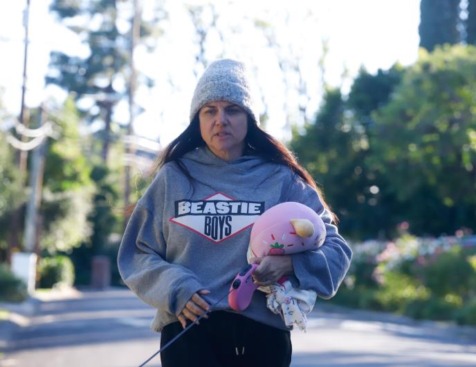 Nosila je tamne pantalone, majicu na prugice i crnu jaknu, preko koje je nabacila malu torbicu. Gurala je kolica u kojima su se nalazile namirnice iz prodavnice, a sudeći prema fotkama, retko ko bi je prepoznao.