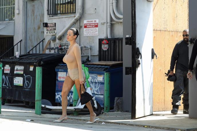 Posle "tanga izdanja" ovaj put se odlučila da napravi jedan krug Los Anđelesom bez grudnjaka ispod topa u boji kože.