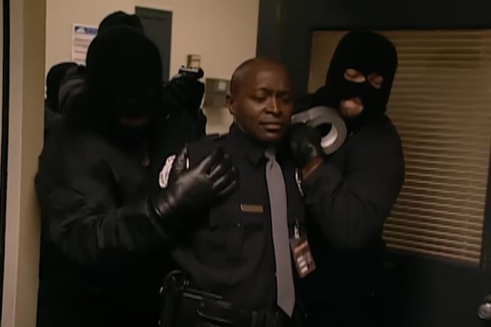 Grupa pljačkaša upala je u kuće dvojice zaposlenih u banci, otela im porodicu i zapretila da će ih ubiti ukoliko ne izvrše ono što se od njih traži. Sledećeg dana dva čoveka pod ucenom su otišli na posao kao da se ništa nije desilo, a na kraju radnog vremena kada su ostali sami, pustili su pljačkaše unutra. Ukrali su 50 miliona dolara iz banke, a porodice zaposlenika su pustili neozlijeđene.