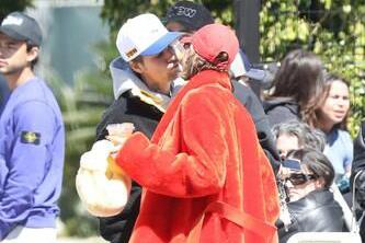 Ona nosi jednostavnu, pripijenu venčanicu i vintidž veo, te bidermajer od poljskog cveća, dok je Džastin nešto ležernije obučen - nosi široke pantalone, kačket i krznenu jaknu. Pored snimaka, par je objavio i niz fotografija, ukljujučujući i one na kojima Biber fotografiše trudnu Hejli.