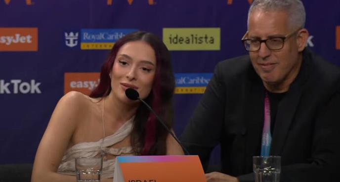 Jost Klajn, predstavnik Holandije na Evroviziji, na konferenciji za medije nakon drugog polufinala, prekrio je glavu zastavom svoje zemlje tokom izlaganja Eden Golan, predstavnice Izraela.