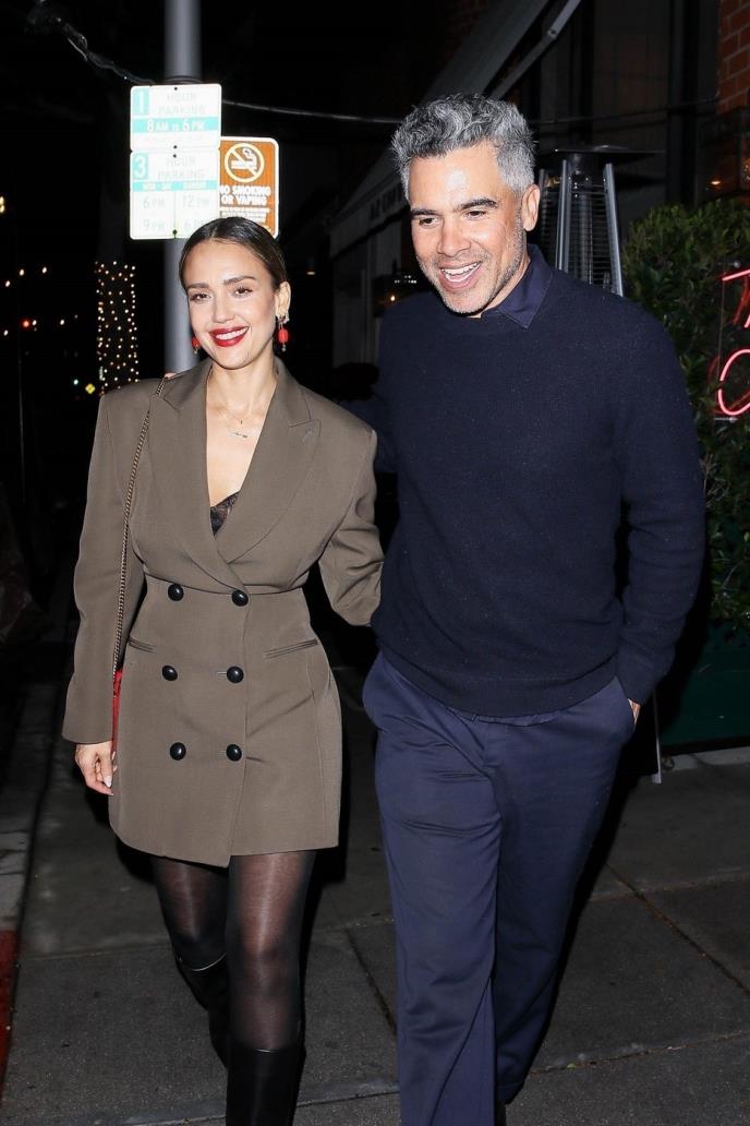 Džesika je blistala u slip haljini i njud kardiganu, dok se producent odlučio za sive pantalone i džemper. Sve vreme su bili nasmejani i dobro raspoloženi, što fotografima nije promaklo.