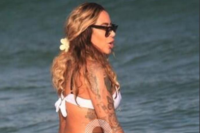 Nosila je crno-beli kupaći kostim, a njene raskošne obline bilo je nemoguće ne primetiti, za koje mnogi tvrde da su veštačke, te da se Rafaela podvrgnula brojim zahvatina na svom telu.