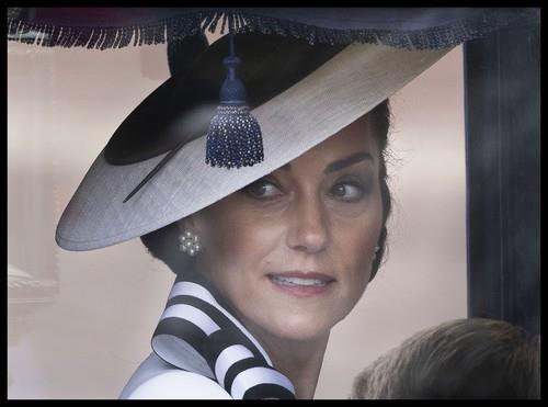 Princeza od Velsa nosila je zanimljiv broš tokom prvog javnog izlaska nakon objave da boluje od raka. Kejt Midlton pojavila se na paradi Trooping the Colour, a fotografi su zabeležili kako se razdragana podrškom okupljene mase građana smeje u kočiji. S njom su bili princ Džordž, princeza Šarlot i princ Lui.Nosila je haljinu Jenny Packham, uz fascinator s potpisom Philipa Treacyja.