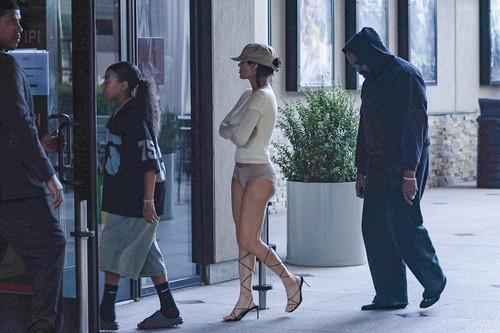 Bjanka ne odustaje od svog kontroverznog modnog izraza ni u porodičnom izlasku, pa je tako za bioskop obukla bež majicu dugih rukava, bež donji veš, kapu i sandale na potpeticu. Kanje i Nort bili su ležerno obučeni - reper se odlučio za trenerku i majicu s kapuljačom, a Nort za farmerice i majicu kratkih rukava.