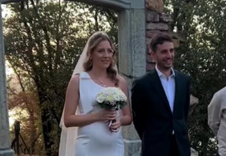 Mlada koja je trudna blistala je u uskoj beloj haljini, dok je mladoženja za ovu priliku izabrao svečano odelo.