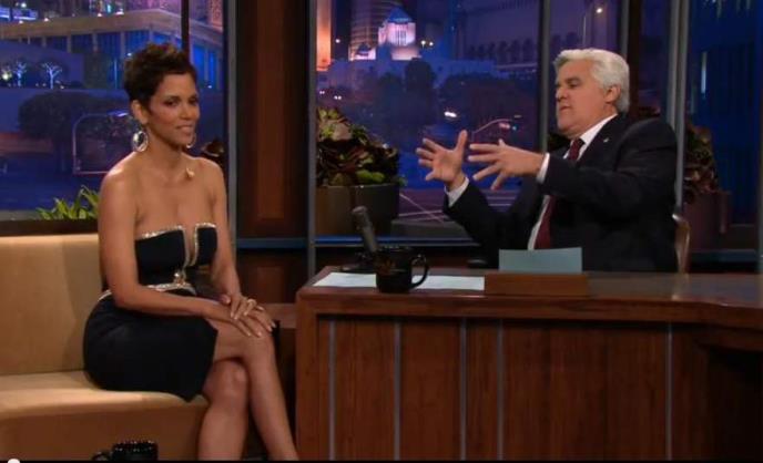 Glumica Hale Beri (46) za gostovanje u šou Džeja Lena (62), obukla je izazovnu haljinu u kojoj su njene grudi bile u prvom planu. Iako se voditelj trudio da je gleda u oči, pogled mu je više puta pao na upečatljivi dekolte glumice.