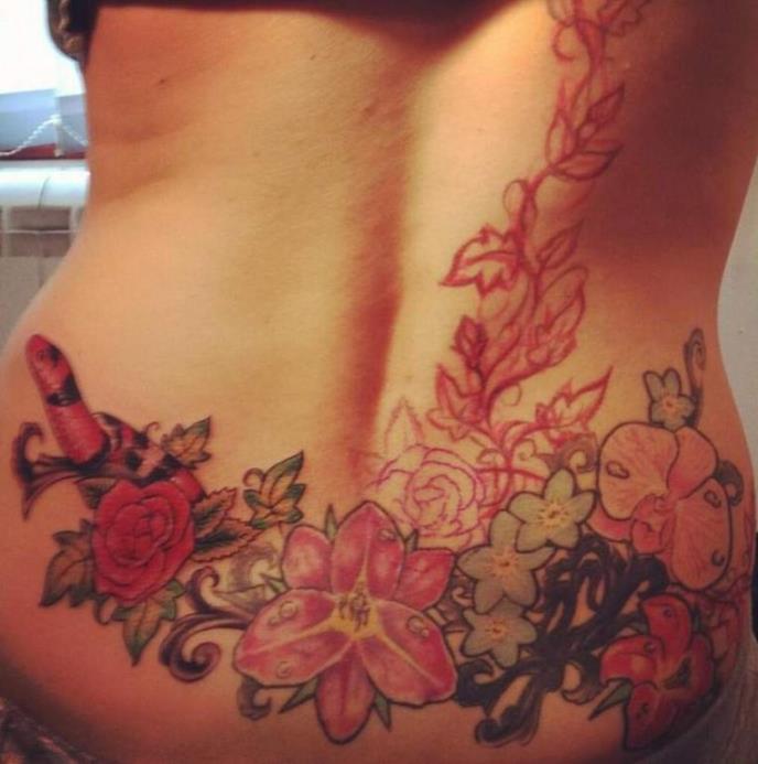 Naime, pevačica je već imala tetovažu iznad zadnjice a sada je, očigledno, rešila da je proširi po celim leđima. Na, još uvek, nedovršenoj tetovaži nalazi se raznobojno cveće, lišće i jedna crvena zmija.