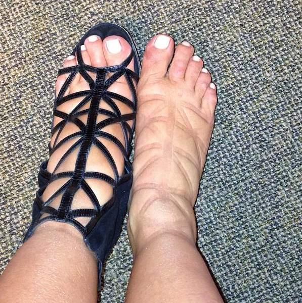 Starleta je fotografisala svoje stopalo nakon što je izula štikle i na koži joj se jasno može videti koliko ju je cipela stiskala jer joj se na celom stopalu jasno vide duboki tragovi od kaišića sa štikle.