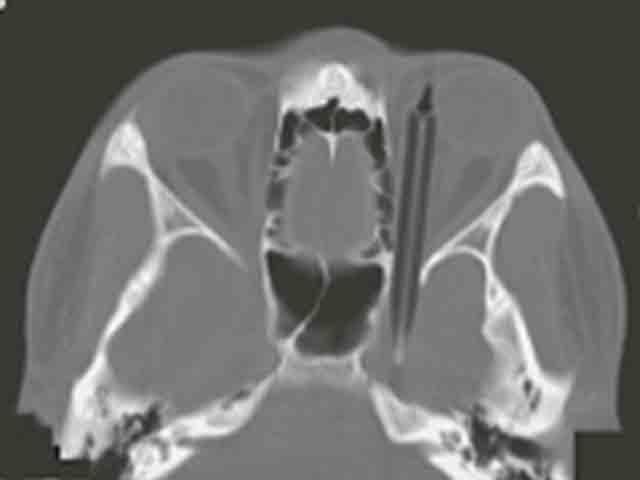 Skenerom je utvrđeno da je u sinusima imao 10 centimetara dugu olovku koja mu je povredila desnu očnu duplju