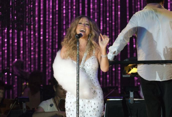 Ona je publici rekla da je povredila rame prošle nedelje prilikom snimanja spota, kao i da je "malo boli, ali je okej". Kerijeva je izvela četiri pesme sa Njujorškom filharmonijom, uključujući "Beautiful" i "Heroj" (Hero).