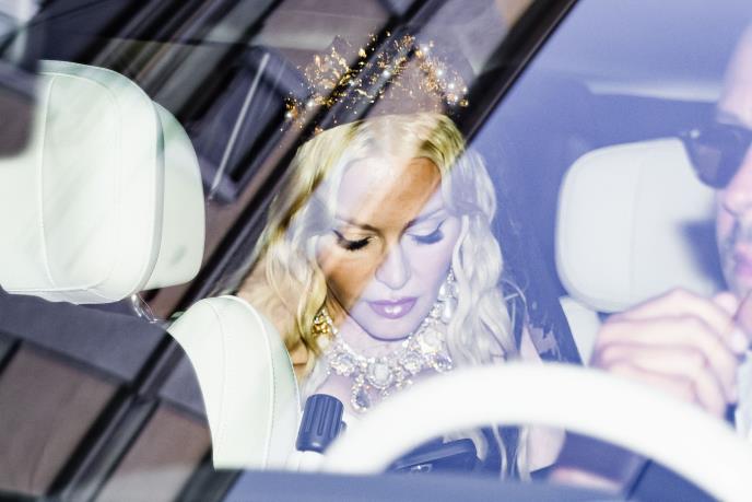 Paparaci nisu mogli da dočekaju da je obaspu blicevima pa su je uhvatili dok još nije izašla iz automobila, a kasnije i u prvom redu dok je pomno posmatrala manekenke koje nose kreacije u njeno ime. Kao što je i bilo za očekivati, Madona se pojavila u vrlo ekscentričnom stilu - potpuno prekrivena crnom čipkom, a posebnu pažnju privukao je veo iste boje koji joj je prekrio celo telo do poda, a preko kojeg je nosila krunu.