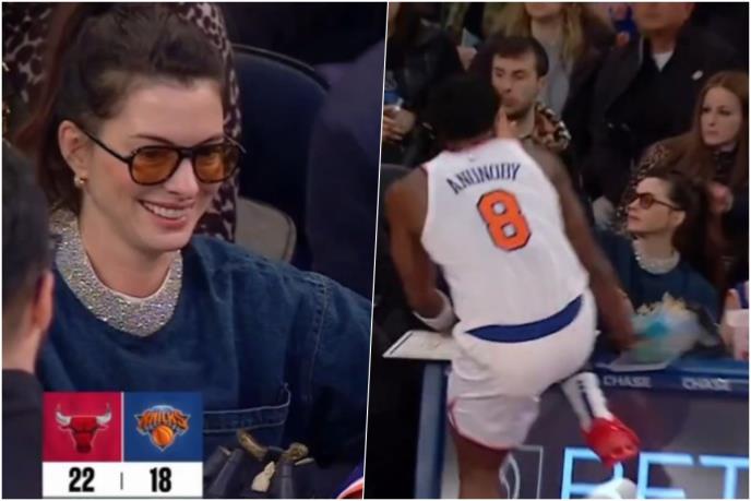 Glumica En Hatavej je u sredu uveče u prvim redovima u Medison skver gardenu pratila NBA utakmicu između Njujork Niksa i Čikago Bulsa. U jednom trenutku košarkaš Niksa, Odži Anunobi, zamalo je srušio glumicu sa sedišta kad je naglo krenuo prema njoj kako bi blokirao dodavanje Bulsa.