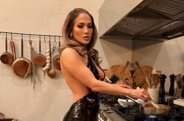 Naime, Džej Lo je na svom Instagram profilu objavila seriju fotografija na kojima u izazovnoj crnoj svečanoj haljini, golih leđa i dubokog dekoltea, u visokim štiklama stoji pored šporeta i sprema sebi večeru.
