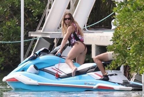 Glumica je blistala u dvodelnom kupaćem kostimu boje kesten, te pokazala zategnute noge dok se vozila džet-skijem sa verenikom Džonatanom Davinom u blizini svoje nove vile na Floridi vredne 13 miliona dolara. Nakon što se provozala na vodenom skuteru, glumica se presvlačila, što nije promaklo oštrom oku paparaca.