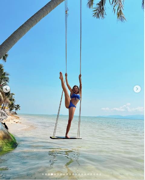 TV ličnost Zara MekDermot pokazala je svoje vitko telo u bikiniju uzbuđeno je podigla nogu u vis nakon što je završila snimanje nove TV serije na Tajlandu.
