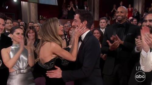 Posle sočnog poljupca sa Hale Beri, Brodi je strpljivo čekao u publici da vidi da li je osvojio Oskara za glavnu mušku ulogu, a društvo mu je pravila partnerka Džordžina Čepman, inače bivša supruga holivudskog zlostavljača Harvija Vajnstina.