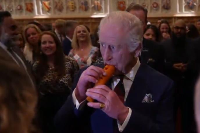 Pogledajte kralja Čarlsa kako svira na šargarepi: Svi plaču od smeha zbog bizarne frule, snimak preplavio mreže (VIDEO)
