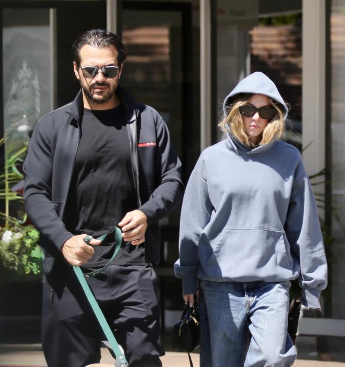 Oboje su bili ležerno odeveni i nosili sunčane naočare, a s njima je bio i Sidnin pas Tenk.