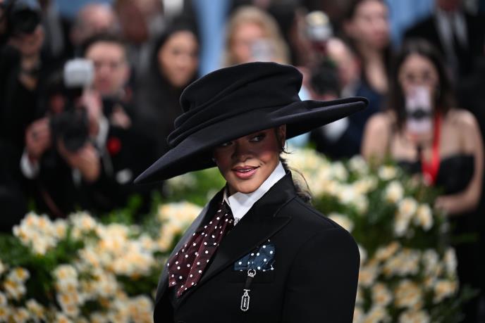 Čuvenim stepeništem Met Gale pevačica je pozirala u crnoj suknji do poda koja je pozadini imala ogromnu mašnu. Sa suknjom je ukombinovala belu košulju, bordo kravatu na bele tufnice, krop blejzer i ogroman crni šešir, koji je fanovima u Srbiji bio najzanimljiviji.