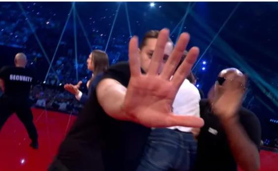 Nakon što mu skoči u zagrljaj, obezbeđenje je izvodi sa bine, a sve to snimljeno je iz svih uglova i čini deo njegovog fenomenalnog nastupa.