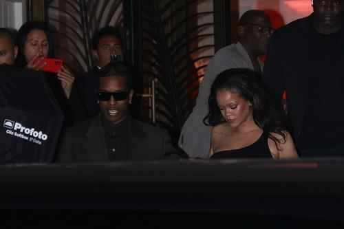 Rijana je zablistala u crnoj haljini s izrezima koja je istakla njenu trudničku figuru i noge zahvaljujući visokim prorezima, dok je ASAP Roki uz nju izgledao elegantno u dugom braon mantilu i sunčanim naočarima.
