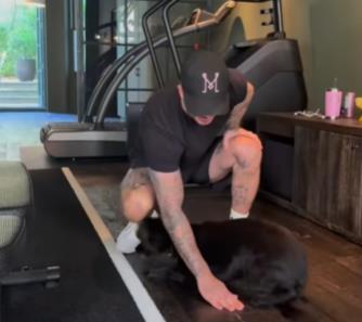 Ovog puta u svojoj kućnoj teretani nisu bili sami, sa njima je bio i njihov preslatki kućni ljubimac, pas, a Dejvid je demonstrirao kojim trikovima ga je naučio.