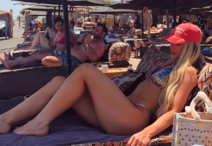 Plavokosa majka dvoje dece bila je vidno raspoložena, uživajući u suncu i zlatnom pesku, ostavljajući utisak osobe koja je daleko od svoje burne prošlosti i incidenta po kojem je svet prvi put čuo za nju.
