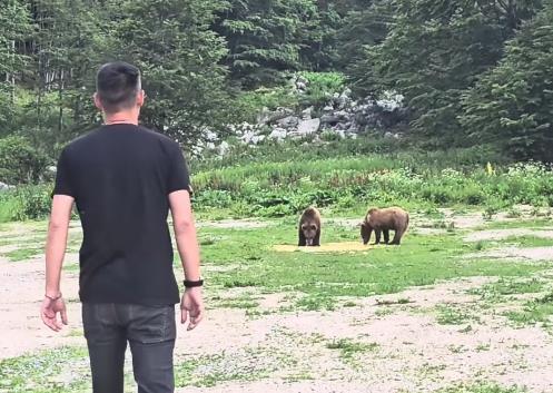 - Zar ovo nije nešto prelepo, na Šar Planini sam pored dva medveda koji se hrane i gledamo ih i uživamo - rekao je Milan Vasić na snimku, i u opisu napisao: