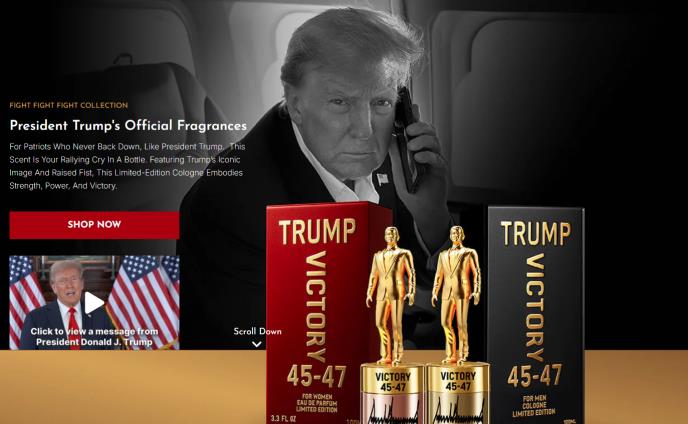 Na svojoj društvenoj mreži Truth Social Tramp je objavio kako izgleda bočica i otkrio da se parfem zove Victory 45-47, aludirajući na to da je bio 45. predsednik SAD, a da je nedavno postao i 47. "Tramp parfemi su stigli. Zovu se Victory 45-47 jer predstavljaju pobedu, snagu i uspeh - za muškarce i žene", napisao je i dodao: "Kupite bočicu za sebe i za one koje volite. Uživajte, zabavite se i nastavite da pobeđujete!"
