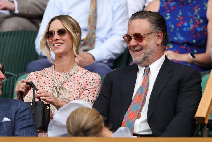Rasel Krou bio je među slavnim gostima u VIP loži na Vimbldonu, gde mu je društvo pravila verenica Britni Teriot. Par je privukao pažnju elegantnim izdanjem – Krou u tamnom odelu, beloj košulji i upečatljivoj kravati, a Britni u ženstvenoj roze haljini sa šarom i sunčanim naočarima.