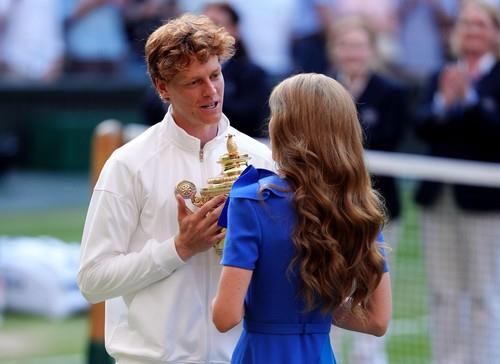 Princeza od Velsa, Kejt Midlton, koja tradicionalno ima čast da uručuje trofeje pobedniku i finalisti, uradila je upravo to – Kejt je pehar predala Janiku Sineru, dok je Karlosu Alkarazu pripala čuvena tacna koja se inače dodeljuje drugoplasiranom.
