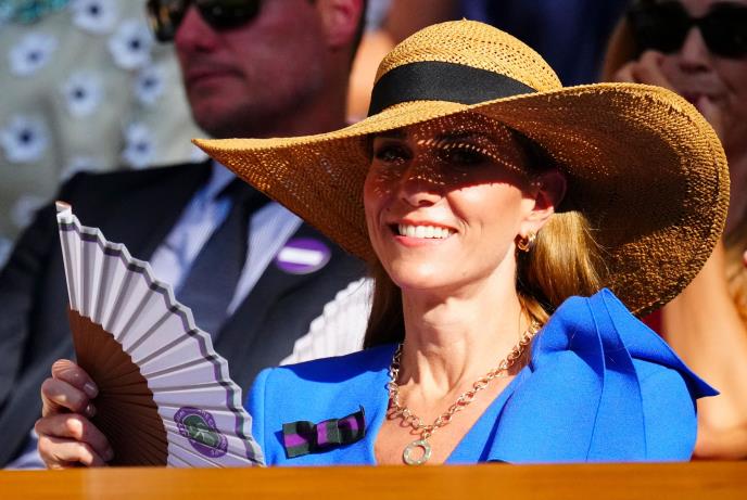 Uz novu boju kose, Kejt je zablistala u bordo blejzeru italijanskog brenda Blaze Milano, koji je iskombinovala s topom ukrašenim perlicama dizajnerke Daniella Draper. Stajling je zaokružila šik šeširom smeđe boje brenda Lock & Co. Hatters, poznatim pod nazivom „Betty Boop Hat“. Njen modni izbor dodatno je naglasio promenu izgleda i pokazao njenu spremnost da eksperimentiše s novim stilom.