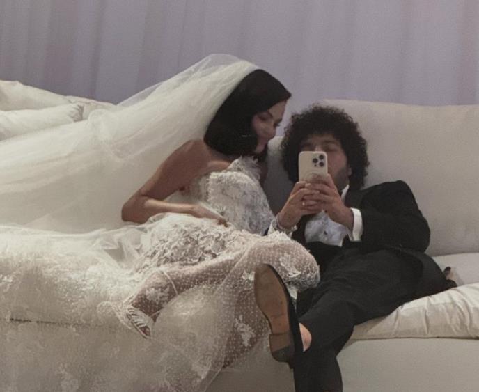 Selena Gomez je takođe najavila venčanje putem Instagrama, podelivši niz fotografija i video zapisa sa ceremonije uz jednostavnu poruku: „ 9.27.25 .“ Fotografije prikazuju par kako se grli, drži za ruke i detalje njenog buketa od belog cveća.